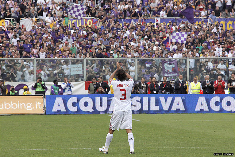 カズ:最終節で、順位的にもチャンピオンズリーグ圏内争いの直接対決だったんだけど、ヴィオラ側がロスタイムにボールを外に出して、みんなで拍手して、マルディーニとハグする時間を作ってくれたんですよ。ミランと順位競ってるんですよ?それも最終節で。スタジアムがスタンディングオヴェーションで、あれが本来マルディーニにふさわしい最後だったとおもいますよ。